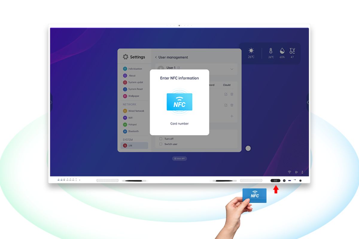 Experience secure and seamless login, specifically interactive flat panels, with NFC and fingerprint access.
