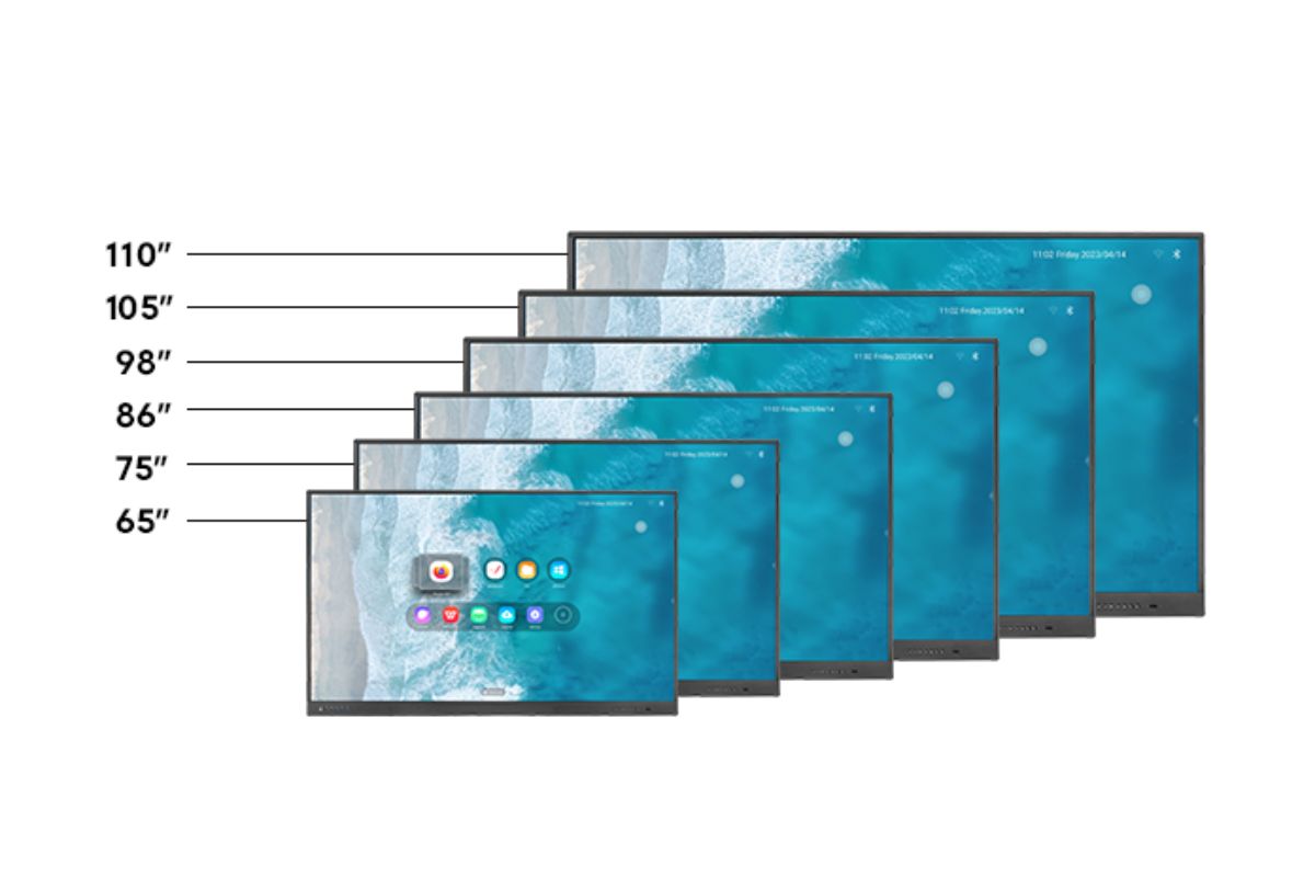 Choose from 65″, 75″, 86″, or 98″ models—ideal for classrooms, conference rooms, training halls and auditoriums.